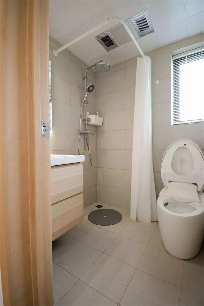 ▲ 浴簾是最簡單的干濕分離設(shè)計(jì),最經(jīng)濟(jì)實(shí)惠,但是要注意下水坡度的設(shè)計(jì)。