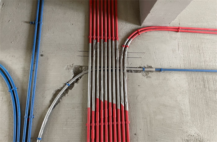 在強(qiáng)電與弱電的交匯管處,我們采用錫箔紙進(jìn)行包裹,杜絕電路隱患。所有電線均在彈線開槽后,先鋪設(shè)線管再進(jìn)行穿線。避免先穿線后鋪設(shè)線管后,無法抽動(dòng)電線的現(xiàn)象,便于后期發(fā)生問題可以抽動(dòng)電線維修。在后期封磚環(huán)節(jié),我們也會(huì)在墻磚外貼上管道位置示意紙,讓業(yè)主與施工隊(duì)明確水電管道位置,保障施工安全。
