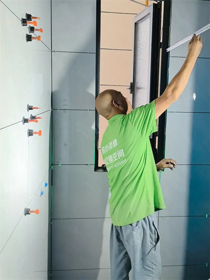 △這是我們的瓦工師傅正在用量尺測量出需要鋪設(shè)區(qū)域的面積。量尺毫厘,精工根基,這也對應(yīng)了我們一直以來的巡檢標(biāo)準(zhǔn)。