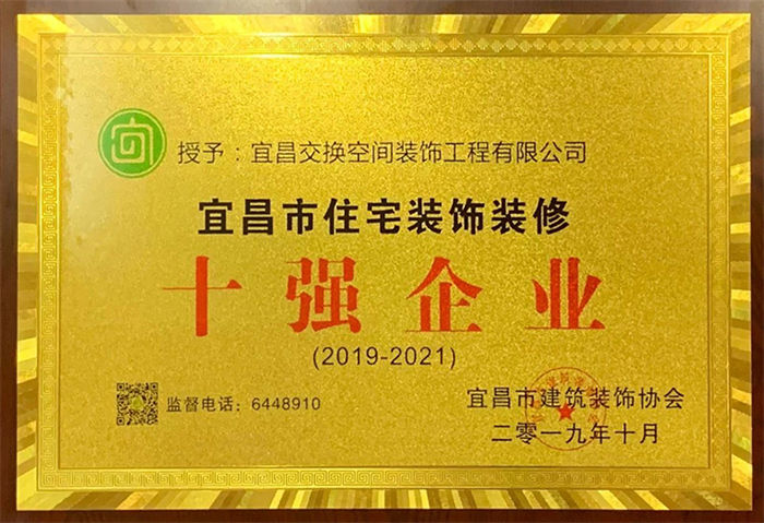 宜昌市住宅裝飾裝修十強(qiáng)企業(yè)