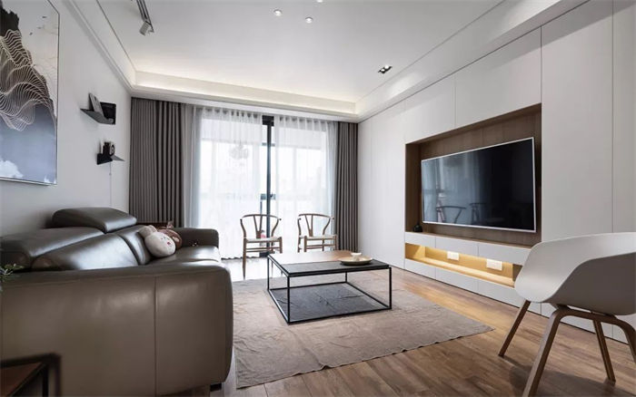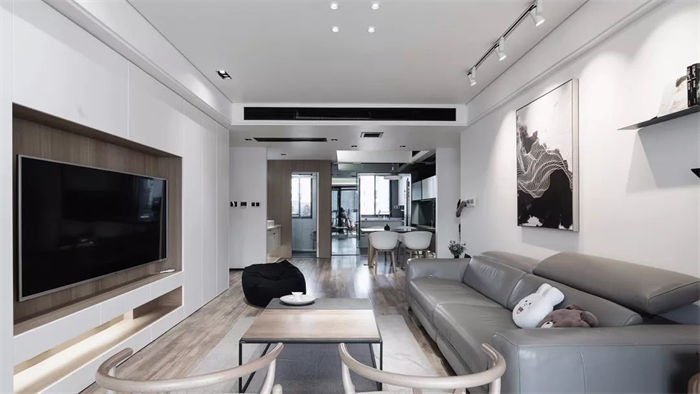 ▲整個(gè)客廳空間以現(xiàn)代時(shí)尚的簡(jiǎn)約空間為主,以凈白與的墻面與木質(zhì)地板搭配下,