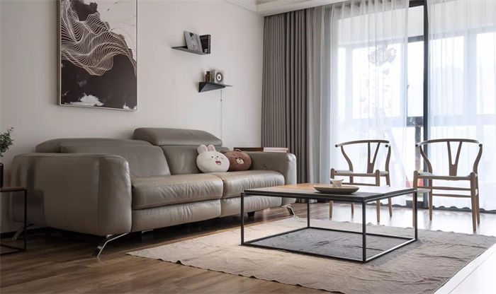 再搭配一套厚實(shí)的皮沙發(fā),結(jié)合極簡(jiǎn)的鐵藝架茶幾,顯得年輕簡(jiǎn)單而精致。