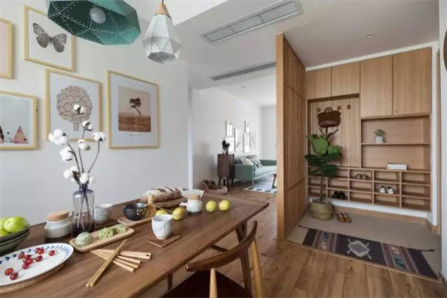 入戶玄關(guān)在增設(shè)隔斷的同時(shí),讓整個(gè)空間隔,而不斷。在整個(gè)空間的視覺(jué)得以延伸的同時(shí)增加趣味性。