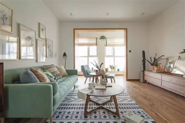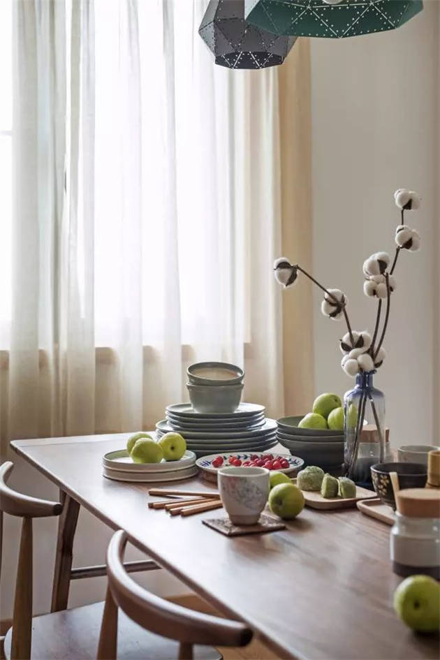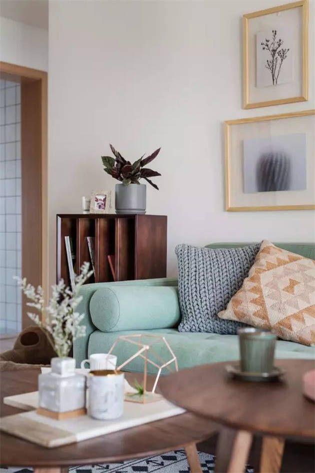 客廳清新唯美的治愈系配色,有種特別的渲染力,搭配自然紋理的木家具,有種讓人停下來(lái)慢慢欣賞的想法,瞬間被這種寧?kù)o的氣氛所感染。
