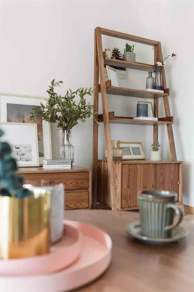 沙發(fā)旁的置物架,放上一盆綠植,幾本書,這樣的角落也是美美噠 ~