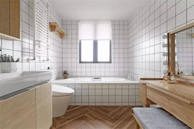 衛(wèi)生間除了有個(gè)超棒的浴缸之外,還設(shè)計(jì)了美美的梳妝臺(tái)。