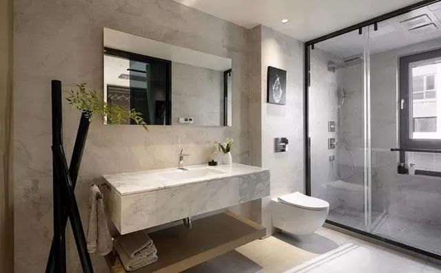 如果條件允許的話,衛(wèi)生間裝修的時(shí)候,洗手池和馬桶都盡量走墻排。下水走墻排之后,就可以把浴室柜和馬桶設(shè)計(jì)成懸空。這樣不僅好看顯檔次,而且浴室柜和馬桶下面不會(huì)出現(xiàn)藏污納垢的情況。平時(shí)打掃衛(wèi)的時(shí)候可以直接沖洗,事半功倍。
