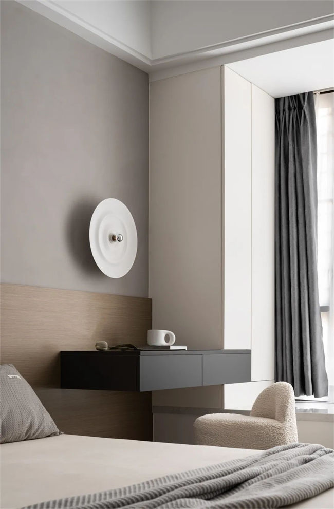 兼具實用性與美觀性的懸浮床頭柜設計,輕薄美觀,完全不占用地面空間?;瘖y、收納多功能通用,給單調(diào)的臥室?guī)硭囆g的美感~