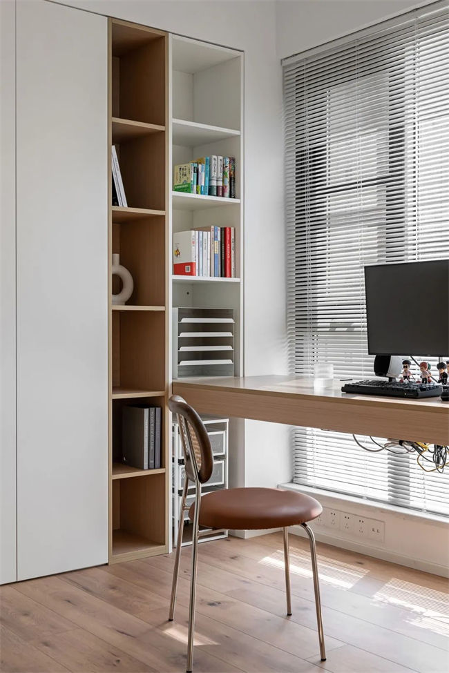 懸浮設計的書桌一般與衣柜或榻榻米相組合,既不會過多占用空間,也能輕松滿足閱讀與收納的雙重需求。