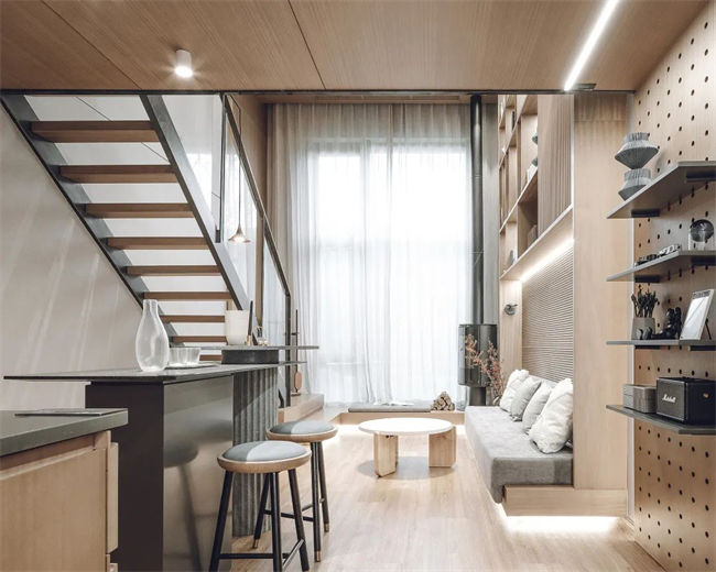 懸浮樓梯的設計,摒棄了繁冗的線條感,在滿足使用功能的同時,更像是一件高級的家居藝術品。