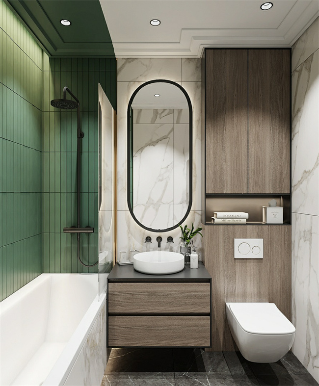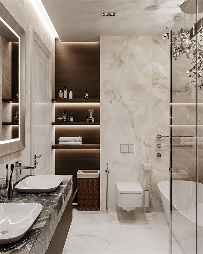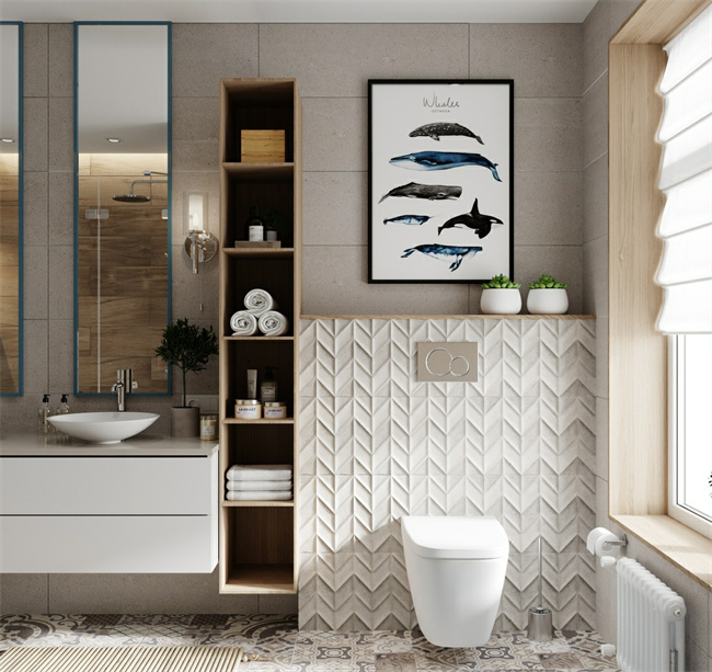 衛(wèi)生間因?yàn)橛盟?,又相?duì)比較陰暗,在一些邊邊角角處就特別容易滋生細(xì)菌。要是想擁有一個(gè)干凈清爽的衛(wèi)生間,可以試試懸浮式設(shè)計(jì),真正做到零死角。