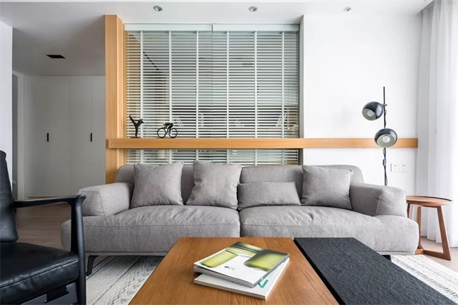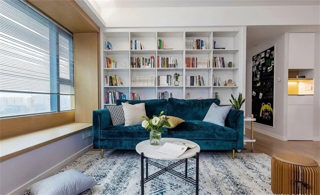將沙發(fā)往前移一下,留出柜子的空間,不管是作為書(shū)架藏書(shū)使用,還是作為展示柜使用,都非常合適。