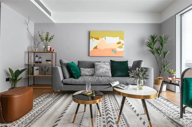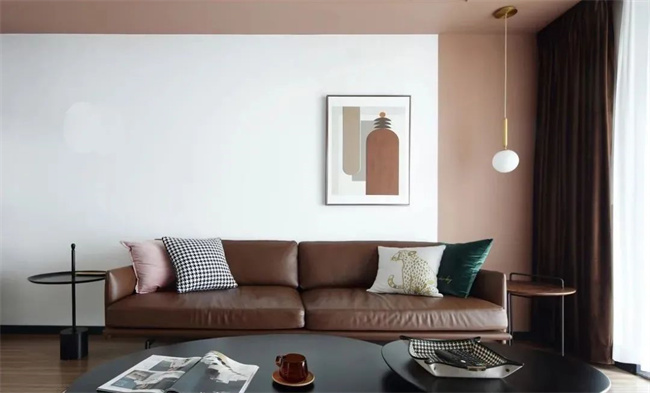 與乳膠漆搭配使用,拼色設(shè)計(jì)讓沙發(fā)背景墻顯得更靈活多變。