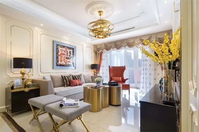 可以在沙發(fā)背景墻上面做一排射燈,用燈光烘托氛圍更棒。