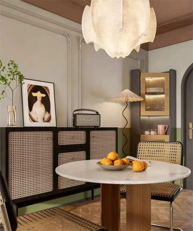 當(dāng)然,高踢腳線設(shè)計(jì)或墻裙設(shè)計(jì)也能營(yíng)造挑高的視覺效果,能把墻分為上下兩部分,就能起到墻面拉伸的作用。