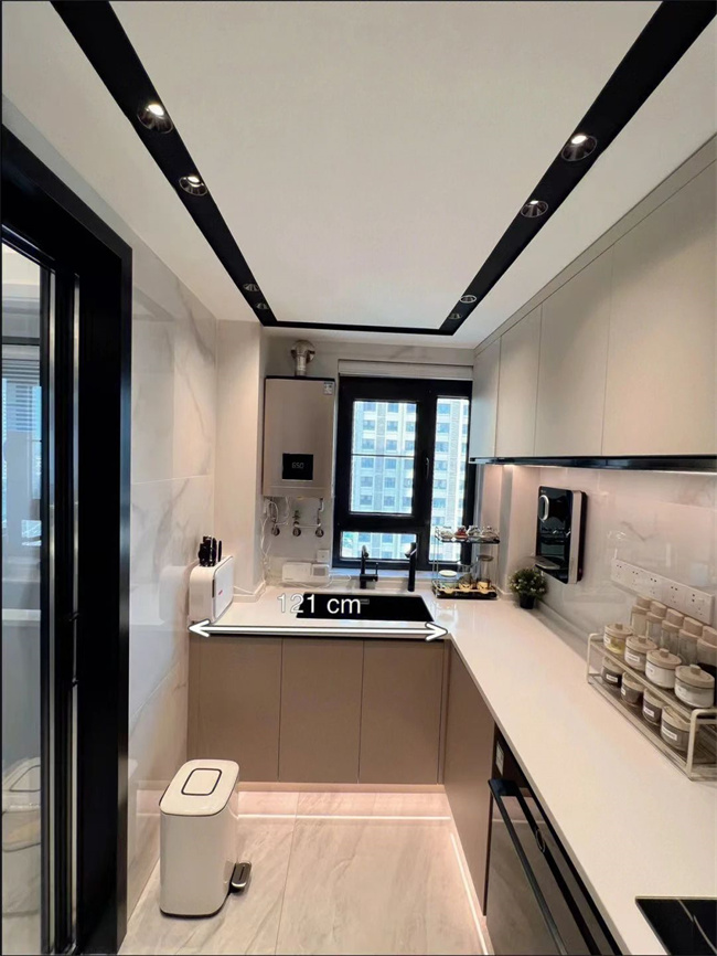 1、廚房門(mén)建議做成玻璃推拉門(mén),可以在開(kāi)放式與封閉式之間靈活切換,既能避免油煙問(wèn)題,還能延伸空間感。