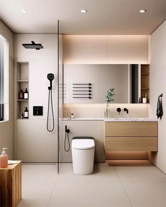2、沐浴區(qū)做個(gè)壁龕,用來(lái)放置洗漱用品,既方便又美觀。