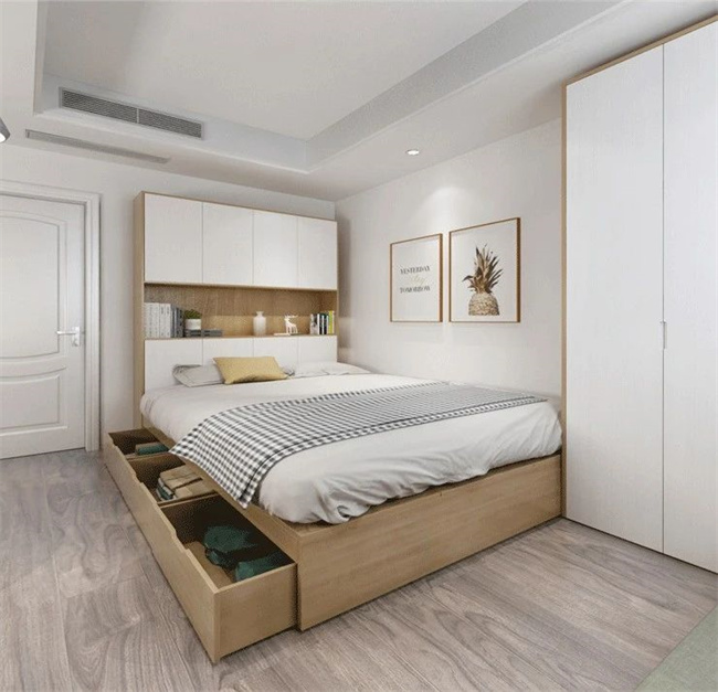 很多床都是懸空設(shè)計(jì),床下保留閑置空間,這種情況可以選擇自帶抽屜柜或收納格的床,用來收納棉被、反季節(jié)的衣物,或囤放衛(wèi)生紙、經(jīng)常不看的書籍等。