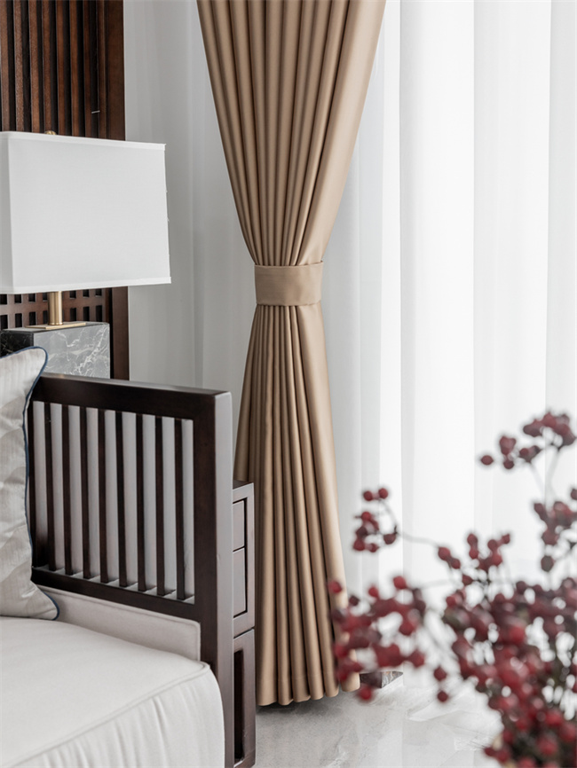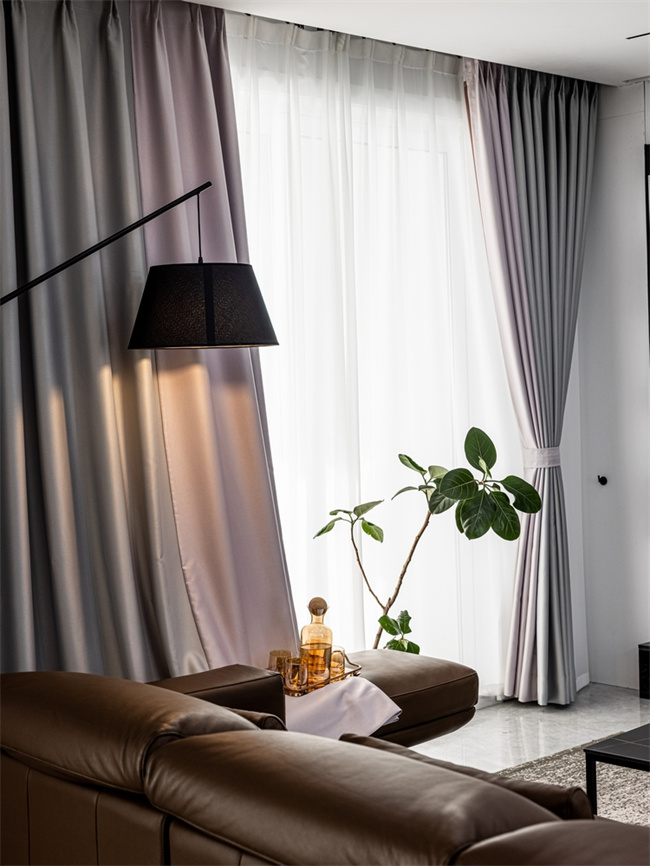 絨布窗簾空間立體感強(qiáng),色調(diào)柔和,光澤度絢麗,色彩感濃郁,具備高貴典雅、簡(jiǎn)潔華美的設(shè)計(jì)效果,能夠構(gòu)建舒適安逸舒適的溫情格調(diào)。