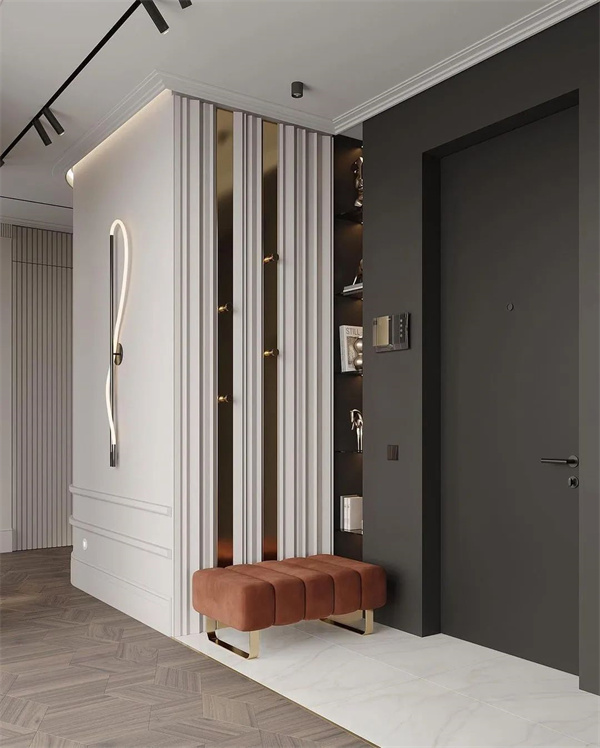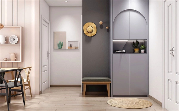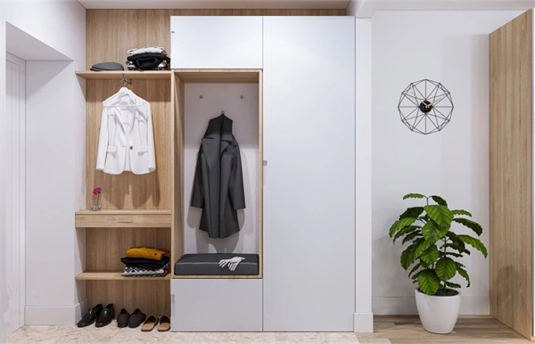 門廳是連接室內(nèi)與室外的橋梁,在門廳處打造一個高柜,方便存放鞋子、外套、鑰匙、手提包等,這樣可以把雜物統(tǒng)統(tǒng)隱藏起來,還門廳一個清爽環(huán)境。