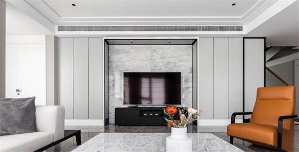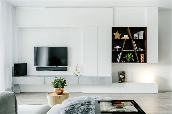 客廳里的遙控器、小家電、玩具、書籍等各類雜物,如果沒有收納好,整個空間就會顯得凌亂。那不妨把背景墻充分利用起來,做個滿墻的電視柜,不僅大氣美觀,還能增加充分的收納空間。