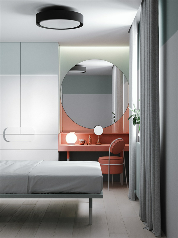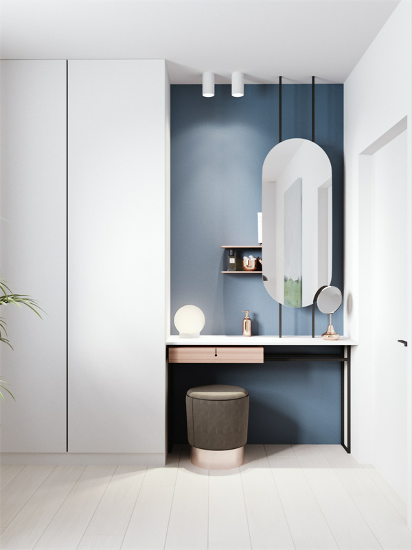 在現(xiàn)代家庭中,不建議單獨買柜子,根據(jù)空間的尺寸定制整體衣柜,可以大大提高臥室的使用率,還可以加入梳妝臺、書桌等功能。