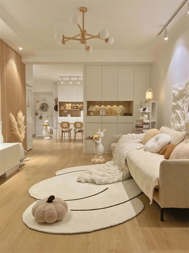 奶油風(fēng)最直觀也是最核心的特征在于,硬裝空間簡(jiǎn)潔清爽,幾乎沒有冗余的設(shè)計(jì),而軟裝卻需要追求質(zhì)感與細(xì)膩,這樣軟硬裝相互協(xié)調(diào),并保持色調(diào)的統(tǒng)一,才能打造出明亮溫柔的居家氛圍。而想要打造出親民、時(shí)髦的奶油風(fēng),無非要從材質(zhì)、造型、燈光這3點(diǎn)要素著手!