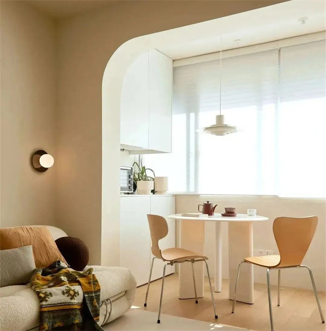 在奶油風(fēng)的設(shè)計(jì)中,對(duì)于造型的把握主要在家具造型的選擇,以及空間硬裝造型的設(shè)計(jì)上。為了搭配出奶油系溫暖喜人的風(fēng)格,造型方面千萬不可以死板、沉重,多些圓潤(rùn)的彎角,少點(diǎn)呆板的直線設(shè)計(jì)。