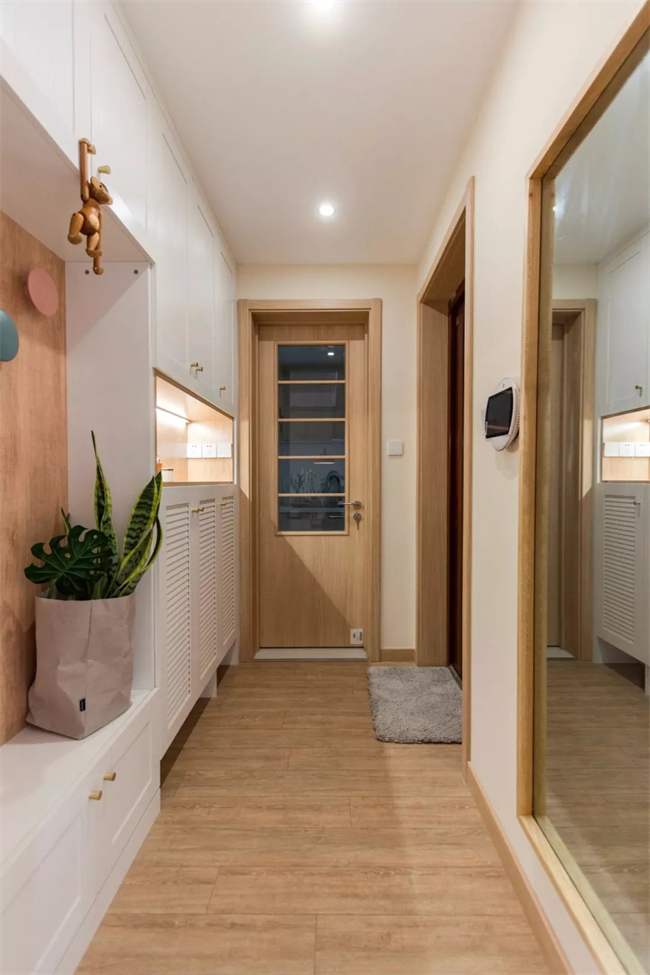 7、玄關(guān)鏡,不僅方便出門整理儀容,鏡子的反射功能還有擴(kuò)大空間的效果。