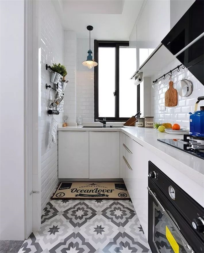 12、櫥柜選嵌入式的,將烤箱、微波爐或其他不常用的物品收納起來,讓廚房整體干凈整潔。