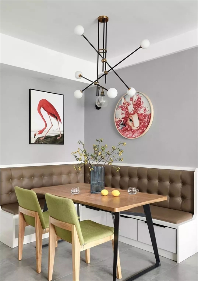 18、餐廳面積小可以用卡座設(shè)計(jì),節(jié)省空間又能增加儲物。