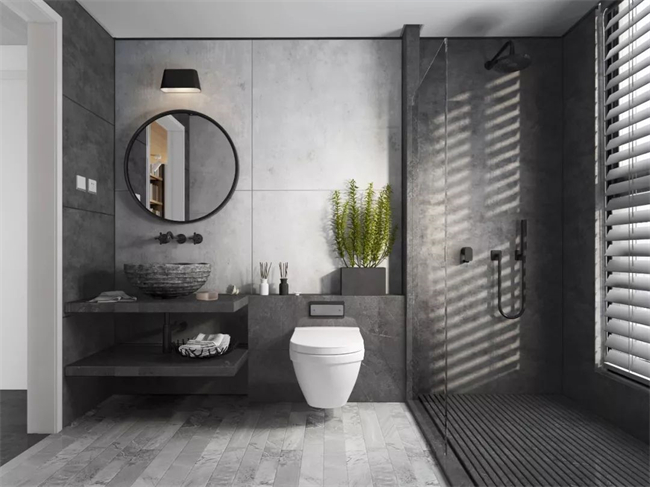 29、壁掛馬桶,和入墻式水龍頭原理一致,不落地的壁掛馬桶是公認(rèn)的「高顏值」浴室神器,下面懸空可以打掃,因此沒有衛(wèi)生死角。