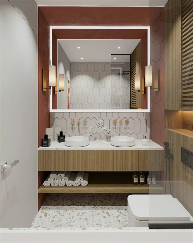 26、沐浴區(qū)裝壁龕或墻面置物架。洗發(fā)水沐浴露,隨手就能拿到。大空間可以做壁龕,小空間在市面上也有各種置物架可以選。