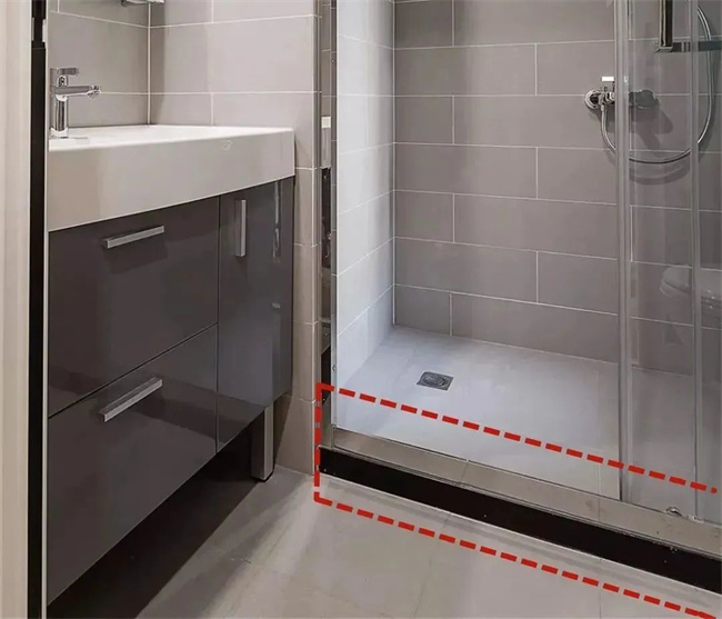 為了避免淋浴時(shí)水漫延到干區(qū),有人會(huì)選擇在淋浴區(qū)外圍裝石材擋水條,雖然具有一定的擋水效果,但裝這個(gè)擋水條會(huì)帶來(lái)一系列問(wèn)題,例如發(fā)霉、產(chǎn)生衛(wèi)生死角等等。