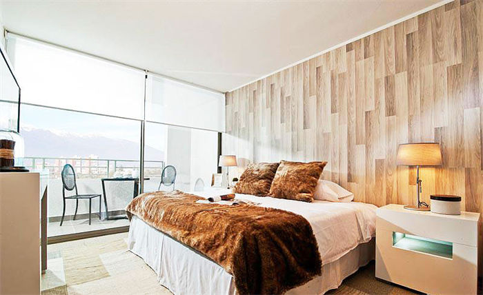 若是想要臥房顯得高聳一些,建議選用豎條型的壁紙,它能將色彩以最巧妙的方式分布在整個墻面上,并且看起來簡單高雅,非常容易與其它圖案相搭配,當然若是房間原本就高挑,這時可選用寬大的圖紋,會使其產(chǎn)生向左右延伸的效果,平衡視覺。