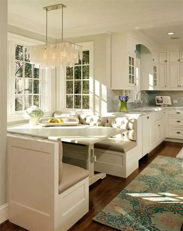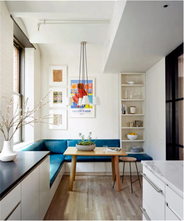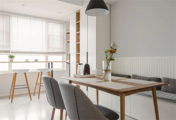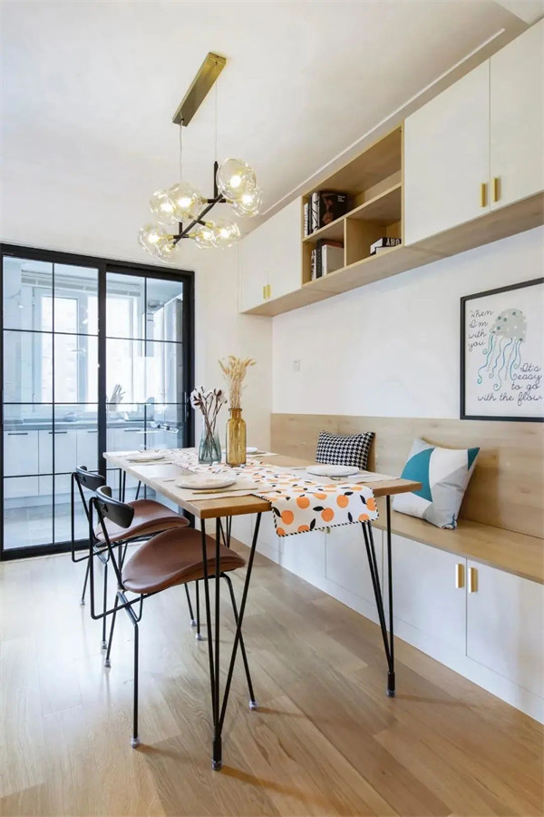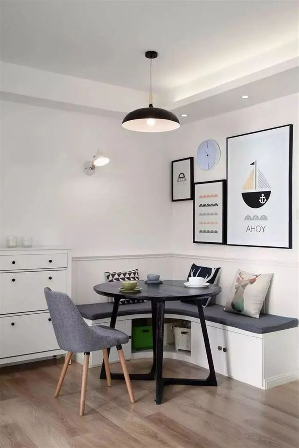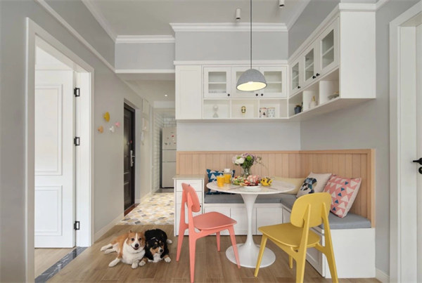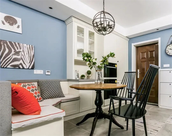 卡座在解決就餐、辦公問題的同時,還能憑空增加收納空間,既讓空間布局更趨于合理,同時還讓家增添了用餐、休閑等功能。