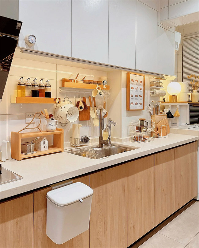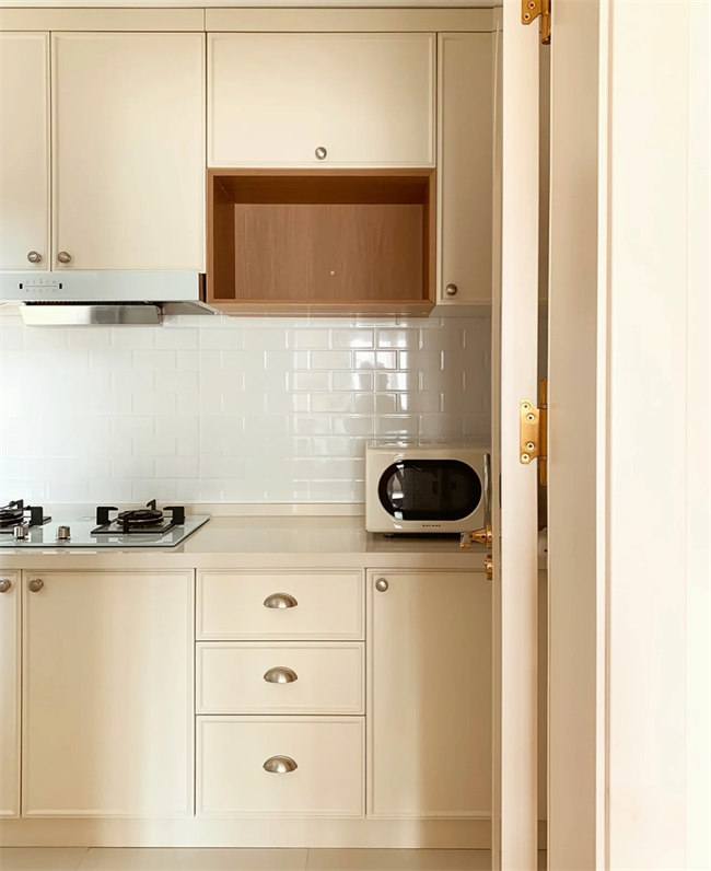 在設(shè)計(jì)廚房的時(shí)候一定要考慮到收納空間,大家都知道廚房的東西比較多,如果收納空間不夠,是真的很鬧心,所以大家盡量選擇定制吊柜、櫥柜。平時(shí)不用的東西都可以收納起來(lái),這樣廚房看起來(lái)也更加的整潔舒適。視覺(jué)上更加通透,做飯的時(shí)候才能保持愉悅的心情。