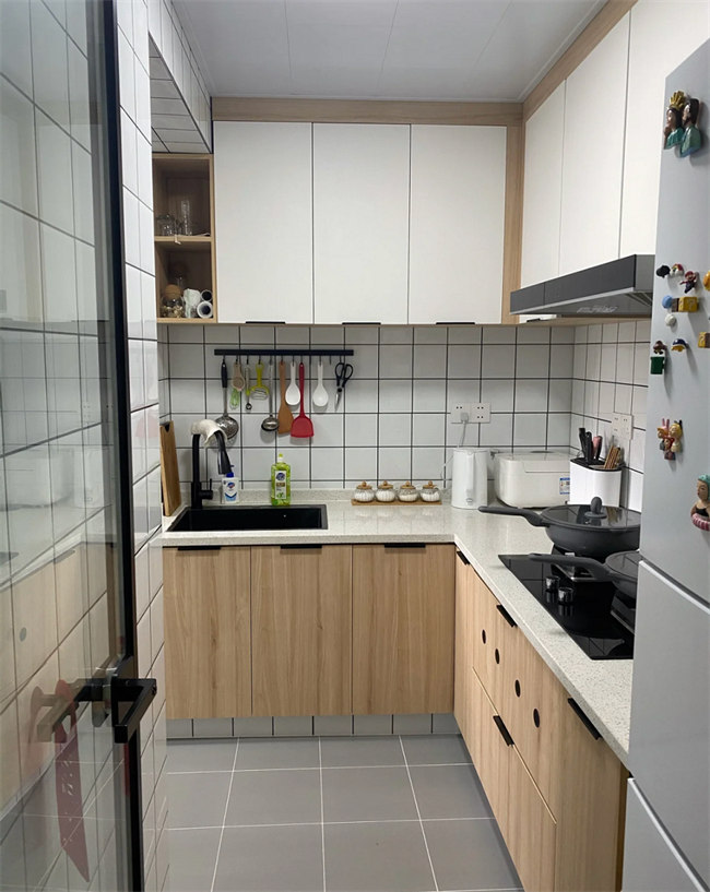 廚房的墻面和吊頂也要注意選擇防水防潮的,可以選擇釉面磚,清潔方便,做完飯就算被弄上油污,打理起來(lái)也比較輕松。