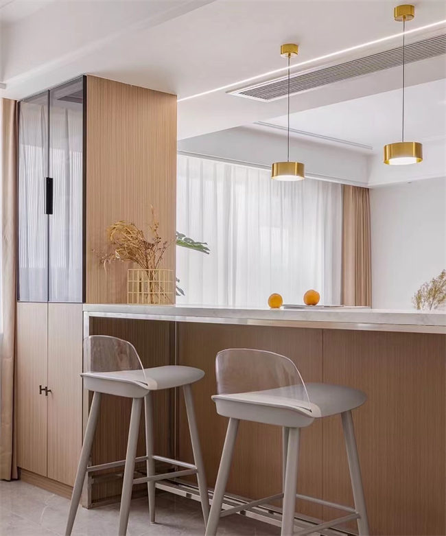 這樣的墻體設(shè)計,打破了整面墻體的封閉感和局限性,消除了以往依靠墻體造型營造氛圍所帶來的單調(diào),創(chuàng)造出獨具魅力的氛圍。讓空間“隔而不斷”,更符合現(xiàn)代生活對家居設(shè)計的追求。