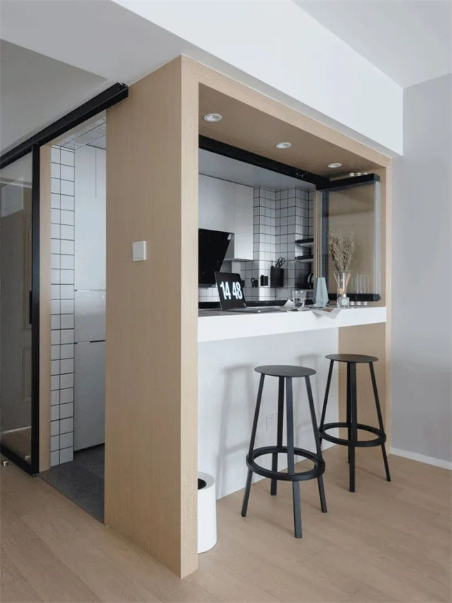 還能很好地完成入戶到室內(nèi)的隔斷作用,緩解狹窄空間給人帶來的壓抑感。