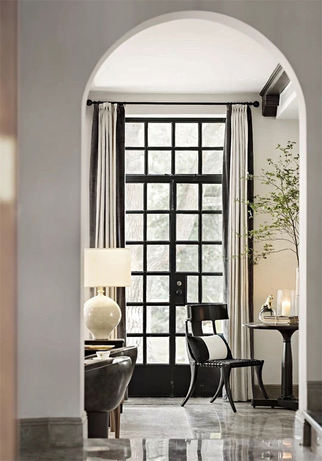 黑色系使用在門窗或者隔斷上,與相對大面積的淺色調(diào)進(jìn)行對比,能夠突出元素之間的特色,也符合更新的審美要求。