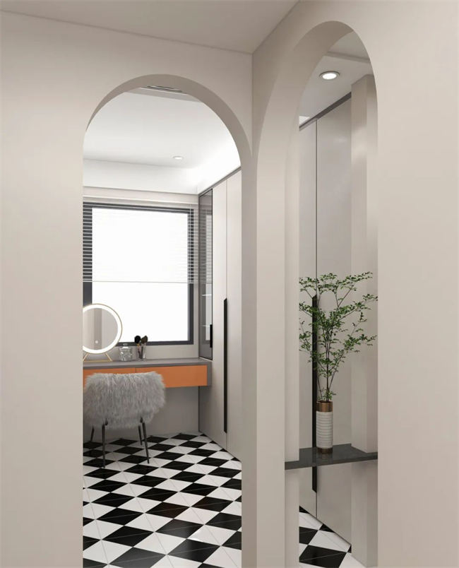 不再局限于方方正正的造型,而是通過(guò)弧形、圓形等更多不同的線條去豐富空間,加強(qiáng)設(shè)計(jì)感及空間趣味性。