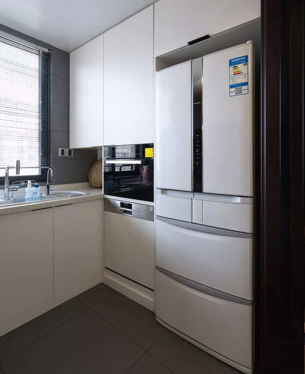 冰箱電器嵌入到櫥柜里面,讓整體顯得更加整潔時尚。