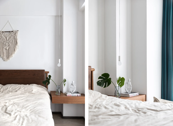 主臥原本柱子的結(jié)構(gòu),現(xiàn)做一個與柱子產(chǎn)生關(guān)系的床頭柜顯得更加和協(xié),整個空間沒有用過多的設(shè)計技巧去表現(xiàn),自由隨性