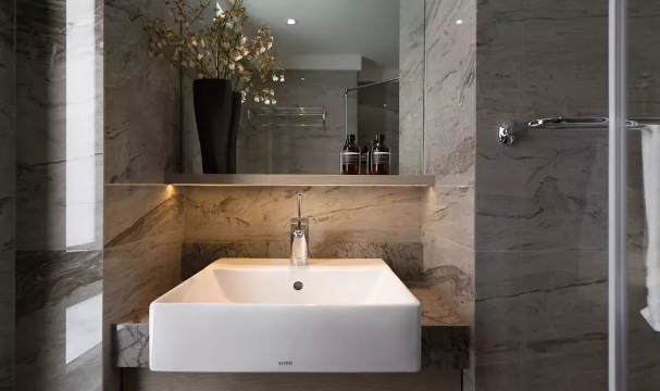 ▲衛(wèi)生間大理石質(zhì)感的墻面,整體簡潔優(yōu)雅的空間,顯得溫情舒適好優(yōu)雅。