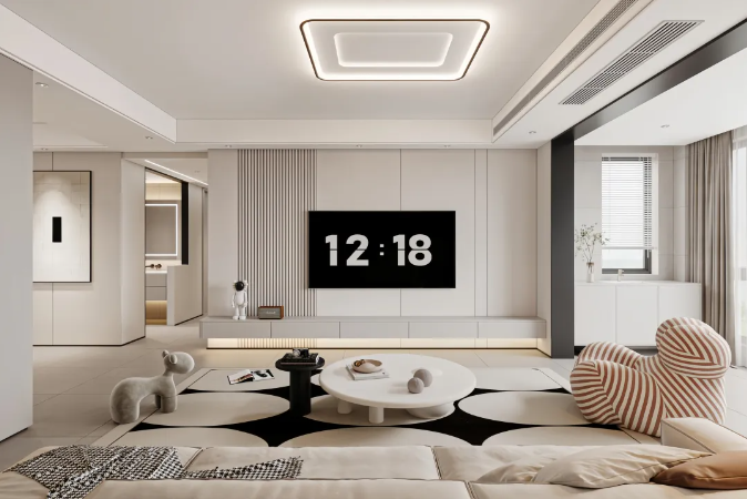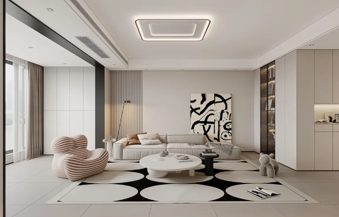奶油色作為主色調(diào),為家增添了一份溫馨與浪漫。搭配灰色門框作為跳色,讓整個(gè)空間充滿生機(jī)與活力。同時(shí),淺色調(diào)的運(yùn)用也使得空間更加明亮、寬敞。