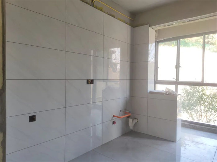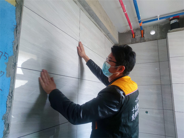 對(duì)瓷磚鋪貼進(jìn)行驗(yàn)收,保證瓷磚接縫處要平直,縫隙的寬度均勻一致、縫隙清晰。貼完后檢查無(wú)空鼓,縫隙均勻,周邊順直,磚面無(wú)裂紋、刮痕、缺角等現(xiàn)象。
