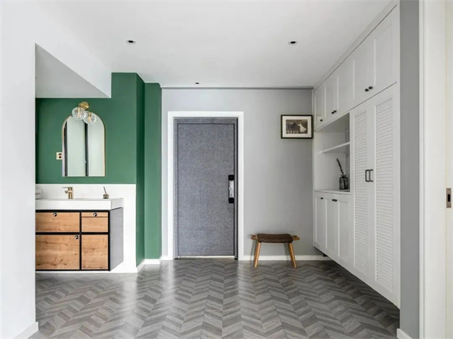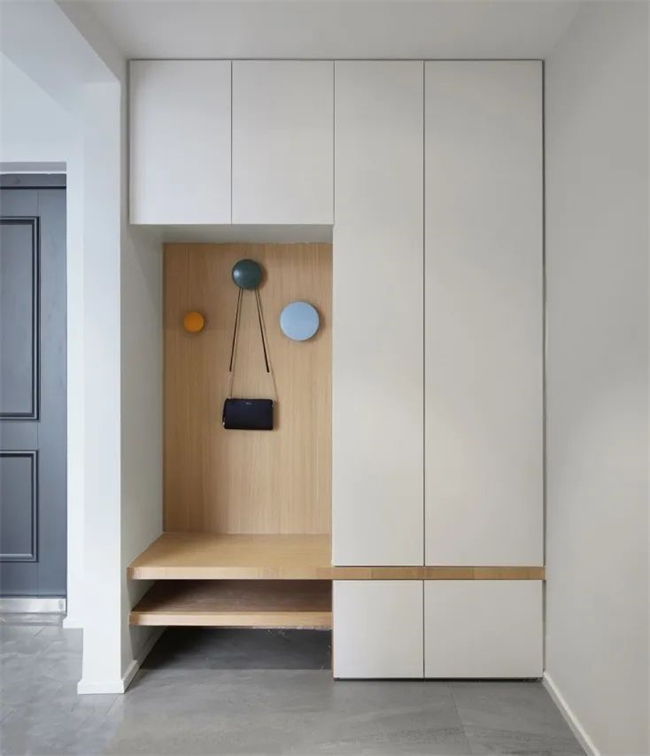 4、鞋柜處增加一個換鞋凳,穿脫更加方便,同時也能節(jié)省時間。